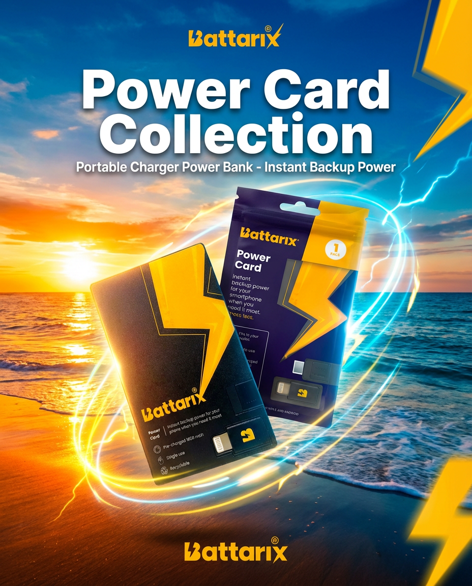 When a traditional power source is unavailable and your phone battery is failing, the pre-charged Battarix Power Card is a vital resource for uninterrupted communication.