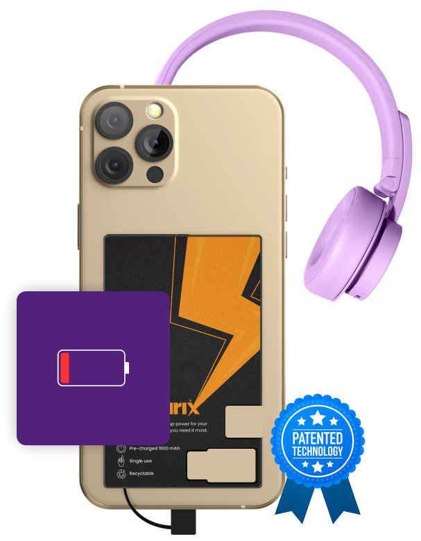 Battarix is the size of a credit card and just over 1 oz in weight. It fits in your wallet, bug-out bag, purse, or glove compartment for on-the-go power without the need for cables or outlets.